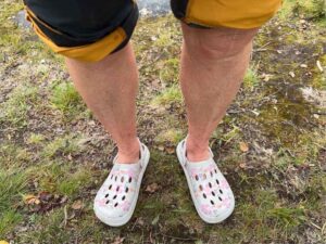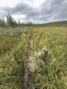 Man bemerkt schon, jetzt befinde ich mich in mehr begangenem Gebiet. Lange Bohlenwege überbrücken Sümpfe, Infotafeln säumen den Weg. Trotzdem, viele Flusswatstellen zwingen entweder zu nassen Füssen oder zu Schuhwechsel.