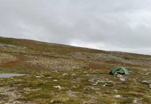 Der Weg führt abwechslungsreich durch lichten Birkenwald hinauf in die höheren Hügelzüge Richtung dem grossen Reisatal, dem Herzstück des Nationalparkes. An einem kleinen Seelein find ich einen tollen Lagerplatz.